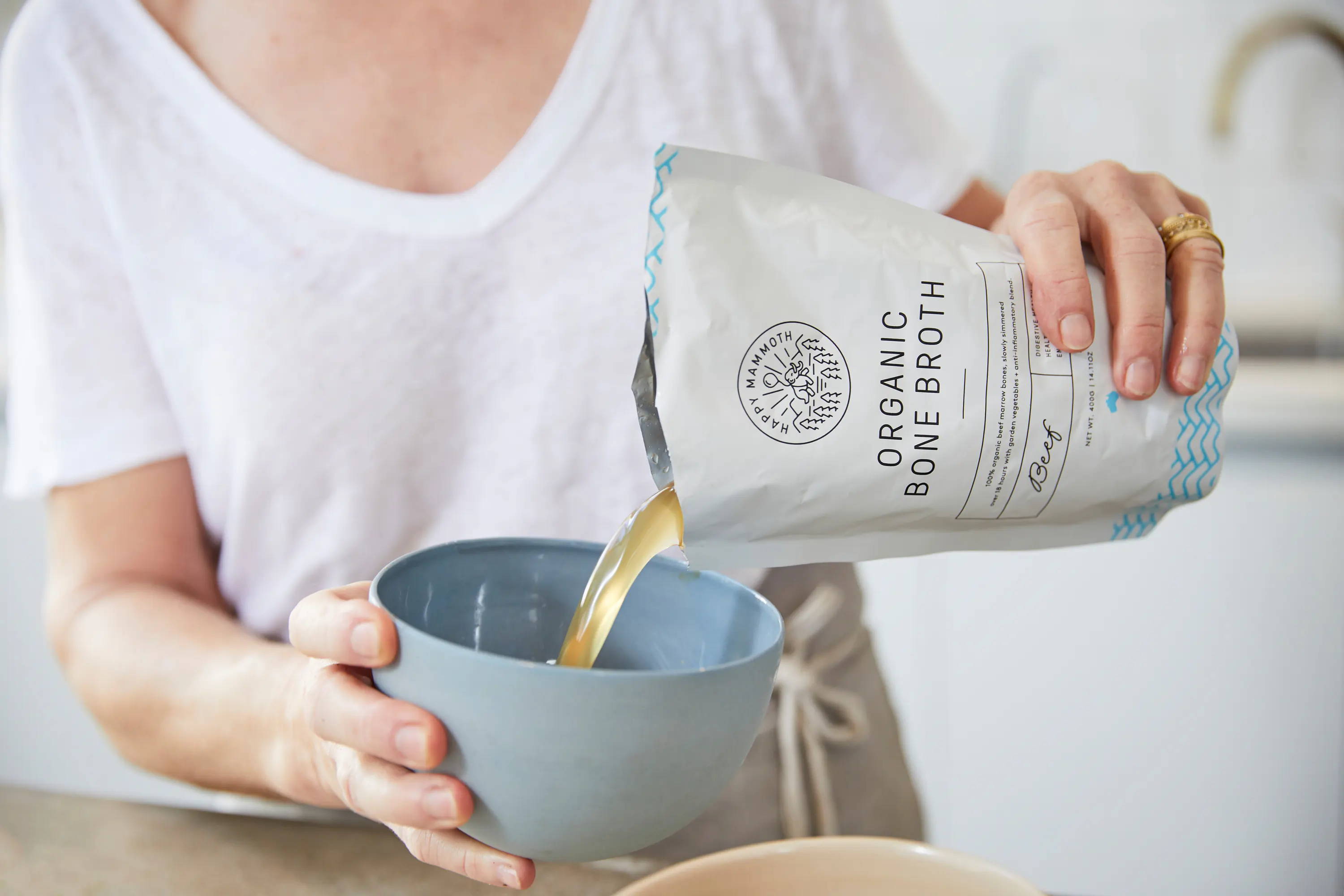 We like to drink it out of a mug, just like you would for coffee or tea. In fact, warming up a cup of broth and adding a pinch of salt is a great way to start your morning—try drinking 8 ounces a day, every day.