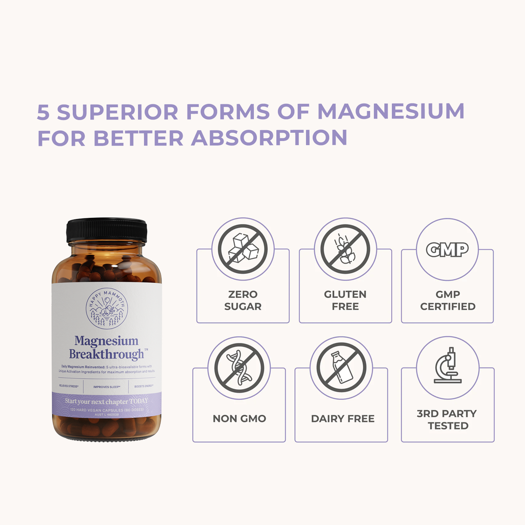 Try Magnesium Breakthrough™ with 5 ultra-absorbable forms of magnesium and a unique co-factor to help calm mild stress and support healthy energy levels.
